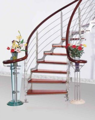 Cầu thang xoắn tay vịn gỗ sang trọng